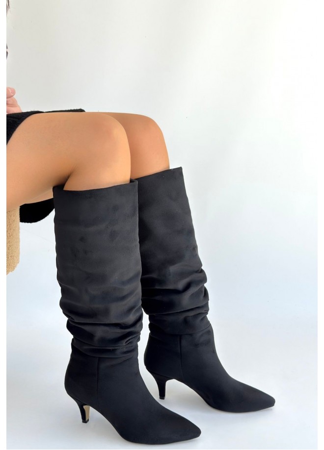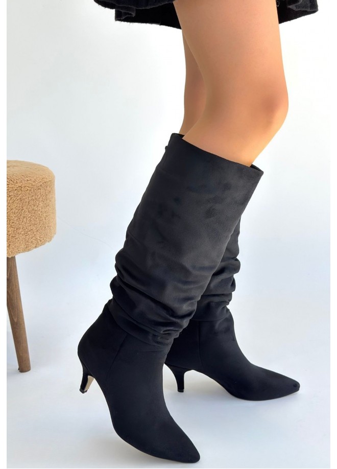 Detay : Topuklu Diz Altı Körüklü Çizme