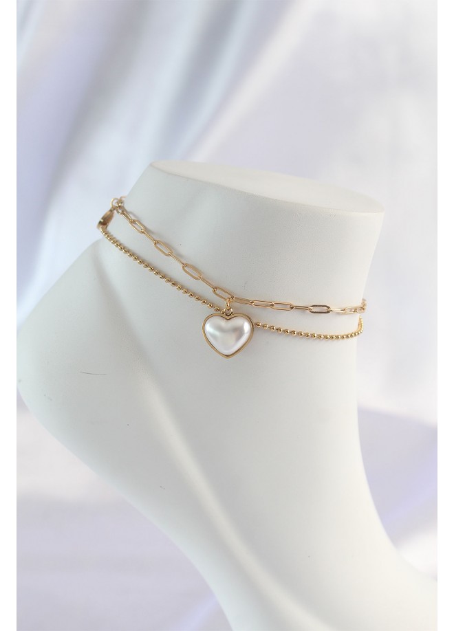Erb 316L Çelik Gold Renk Beyaz Kalpli 2li Halhal