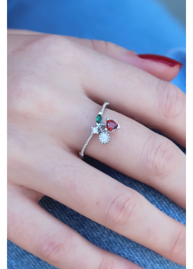 Erb Gümüş Renk Kiraz Model Zirkon Taşlı Kadın Yüzük