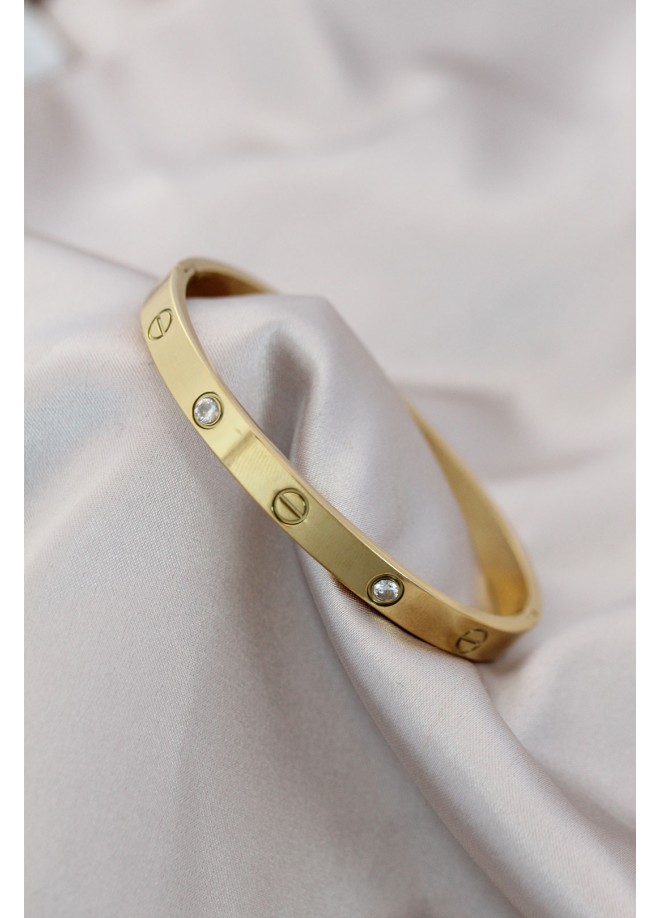 Erb 316L Çelik Gold Renk Zirkon Taşlı Bileklik