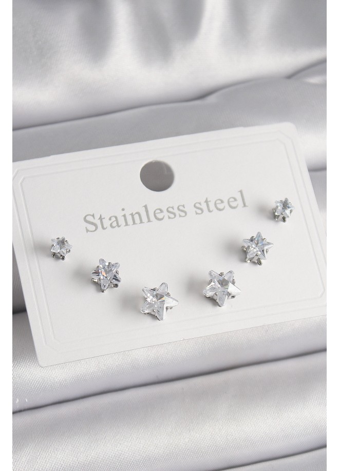 Erb 316L Çelik Gümüş Renk Zirkon Taşlı Yıldız Model Kadın Küpe Seti