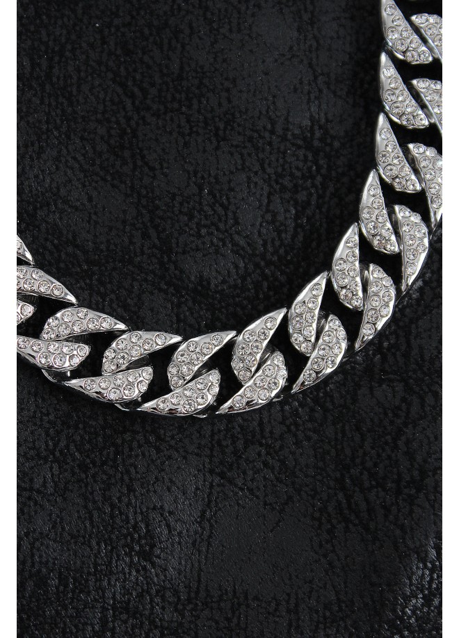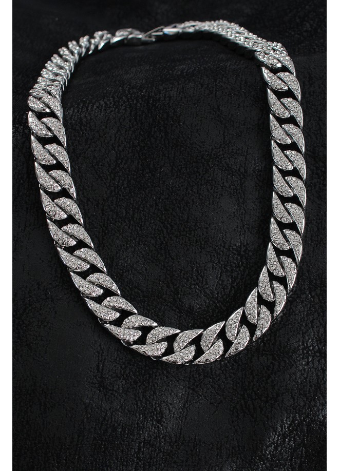 Erb Pirinç Zirkon Taşlı Cuba Gurmet Model Gümüş Renk Erkek Kolye