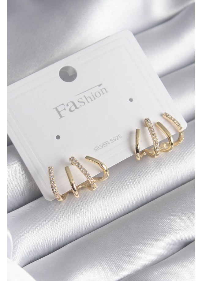 Erb Pirinç Gümüş Renk Zirkon Taşlı Çatal Model Kadın Küpe