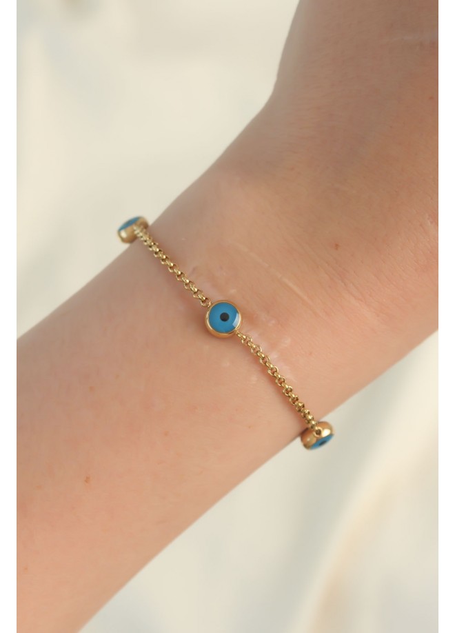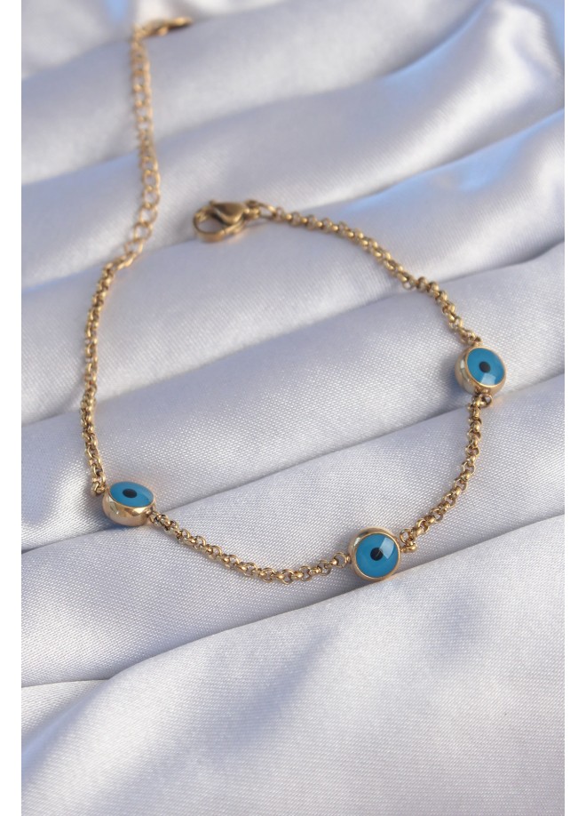 Erb 316L Çelik Gold Renk Nazar Boncuk Tasarımlı Bileklik
