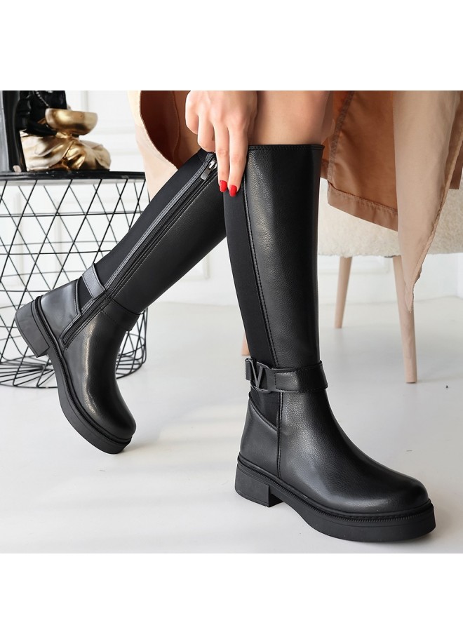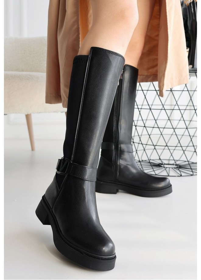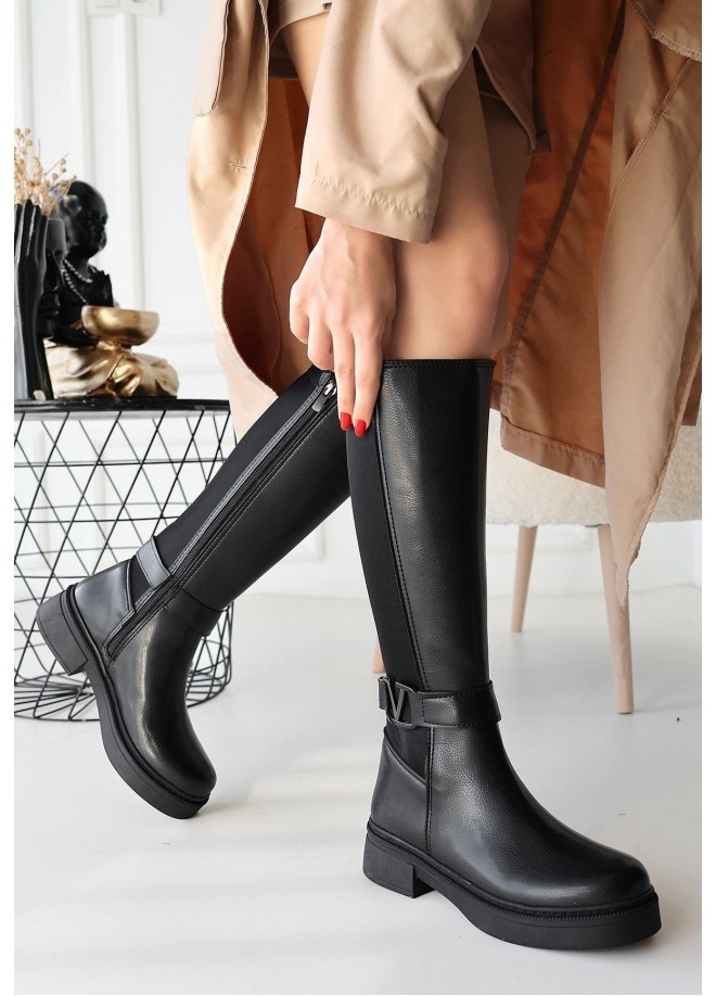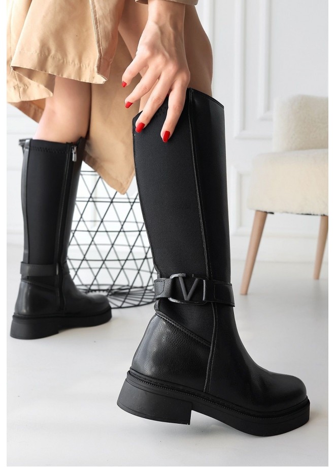 Detay: Topuklu Yandan Fermuarlı Diz Altı Çizme
