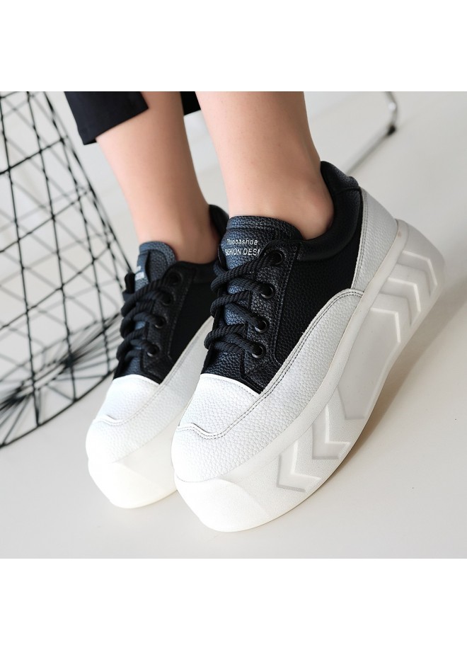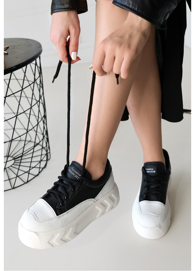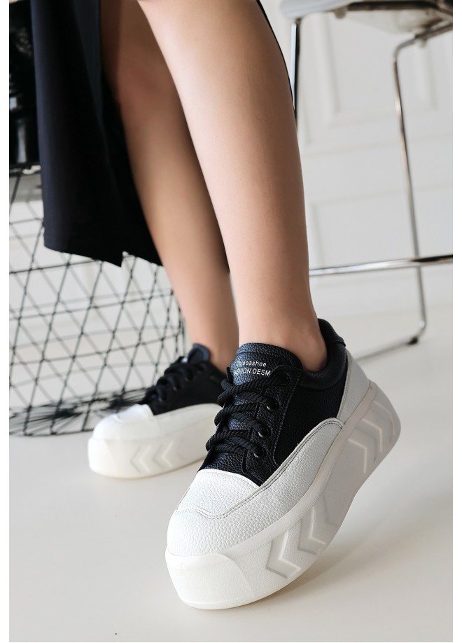 Emwa Siyah Cilt Bağcıklı Spor Ayakkabı