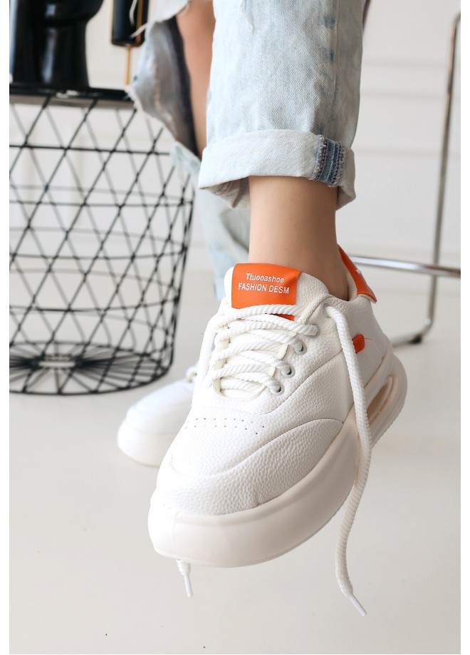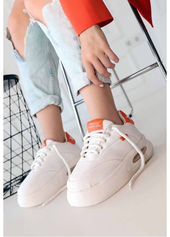 Chris Beyaz Cilt Turuncu Detaylı Bağcıklı Spor Ayakkabı