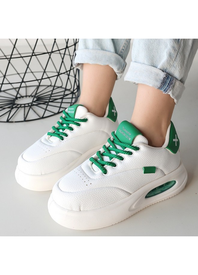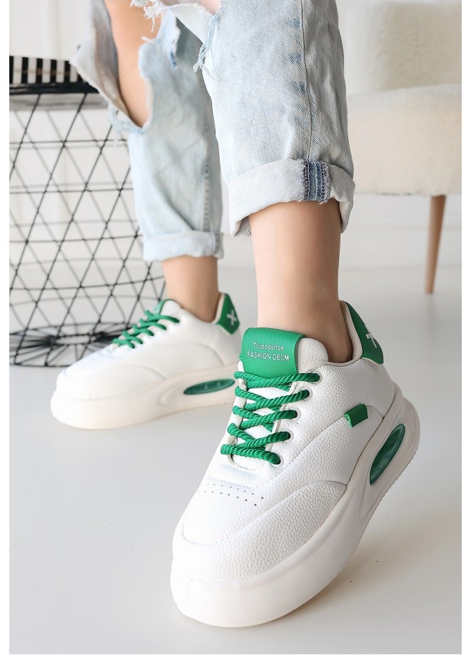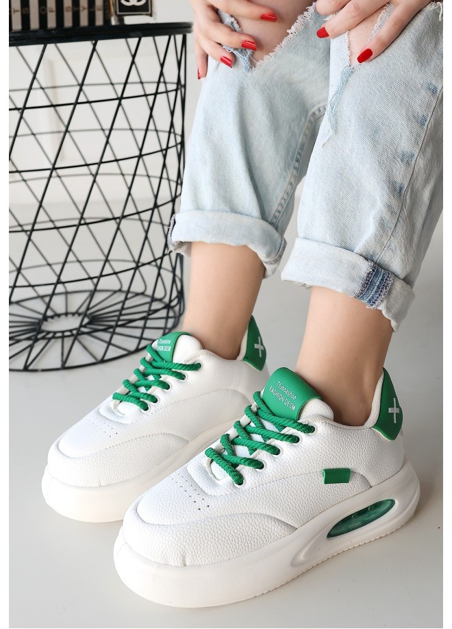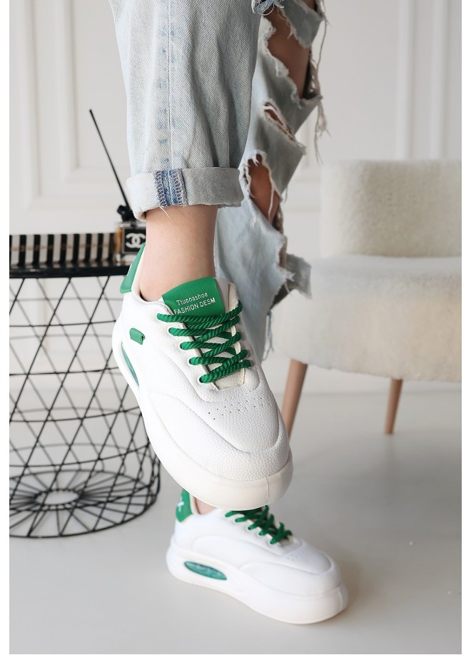 Chris Beyaz Cilt Yeşil Detaylı Bağcıklı Spor Ayakkabı