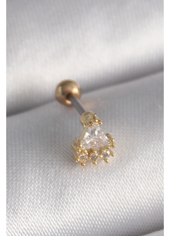 Erb 316L Çelik Gold Renk Üçgen Zirkon Taşlı Tragus Piercing