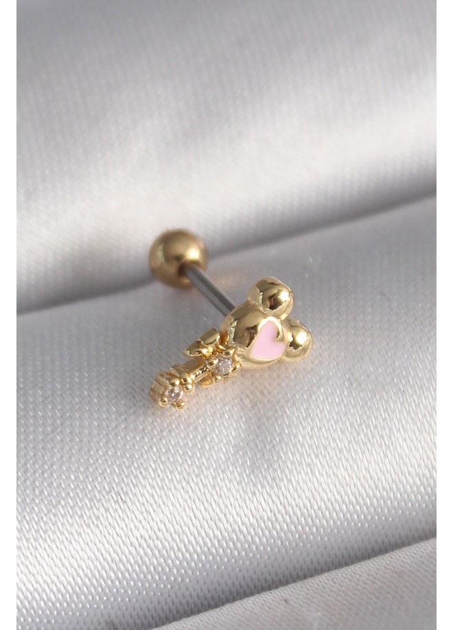 Erb 316L Çelik Gold Renk Zirkon Taş Detay Pembe Kalp İşleme Tragus Piercing