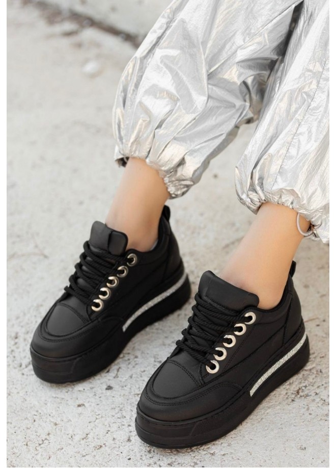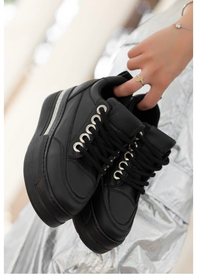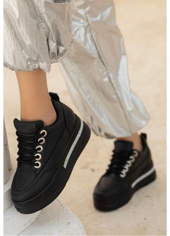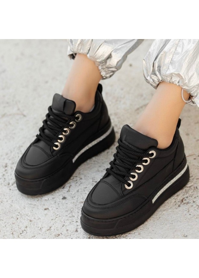 Lulu Siyah Cilt Bağcıklı Spor Ayakkabı
