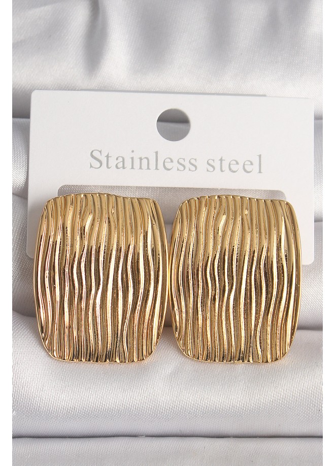 Erb Pirinç Gold Renk İşlemeli Kare Plaka Model Kadın Küpe