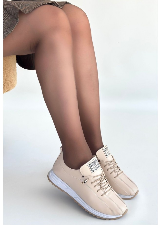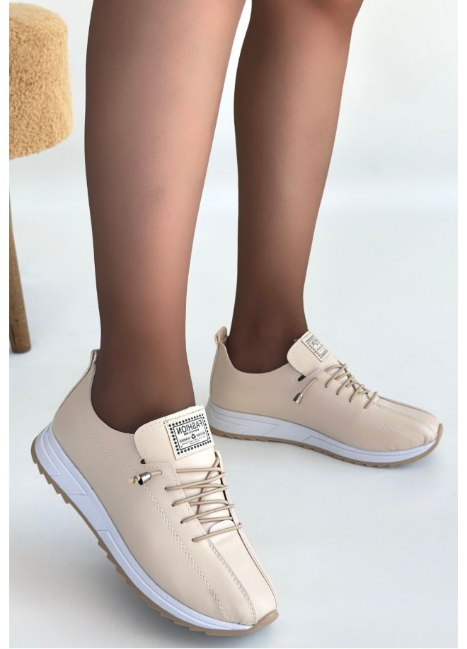 Monya Bej Cilt Bağcıklı Spor Ayakkabı
