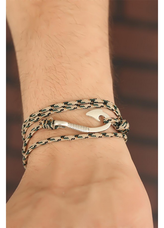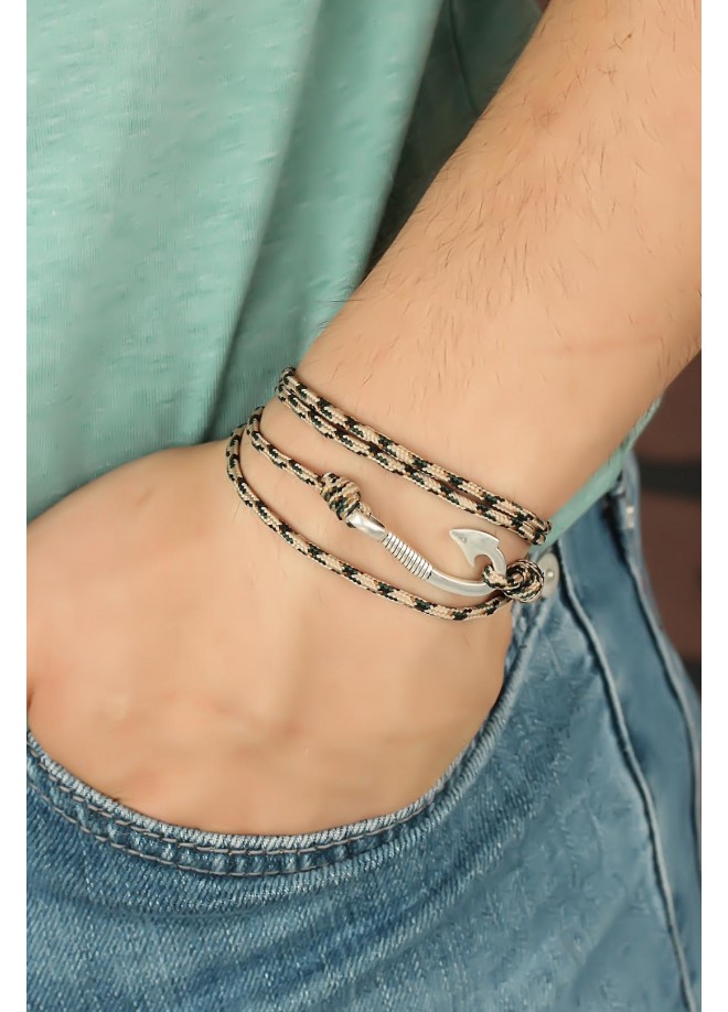 Trend tasarımlı Krem Renk Çizgi Desenli Metal Kancalı Erkek Bileklik modeline bayılacaksınız.