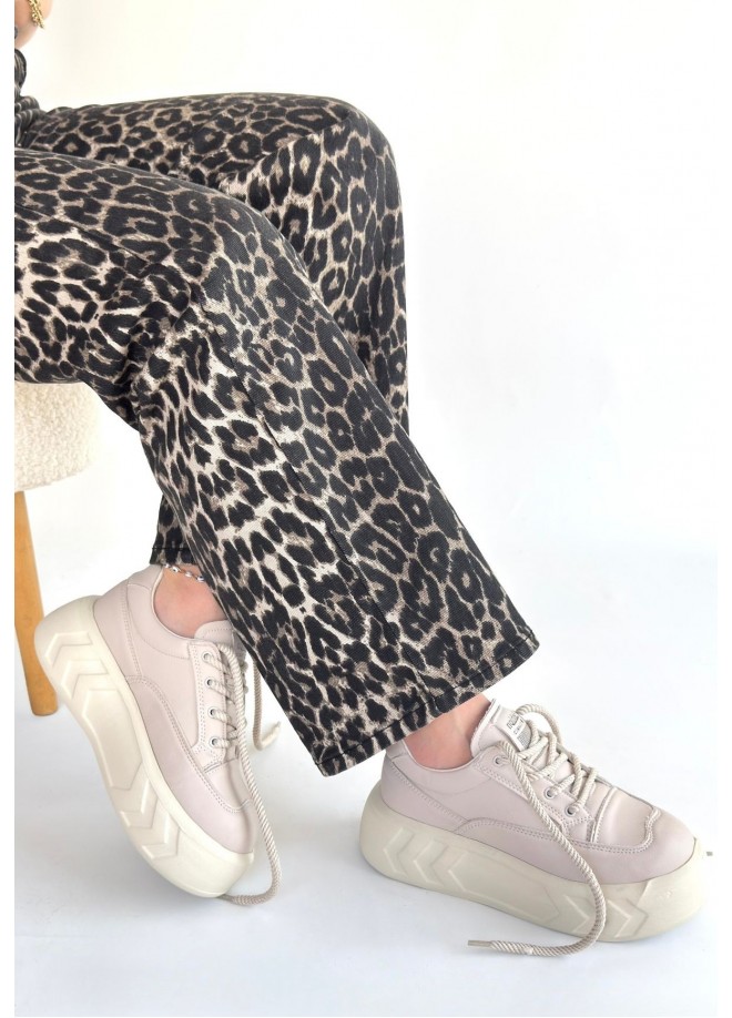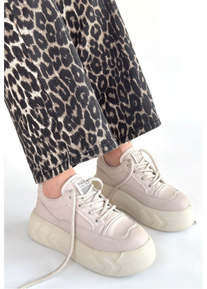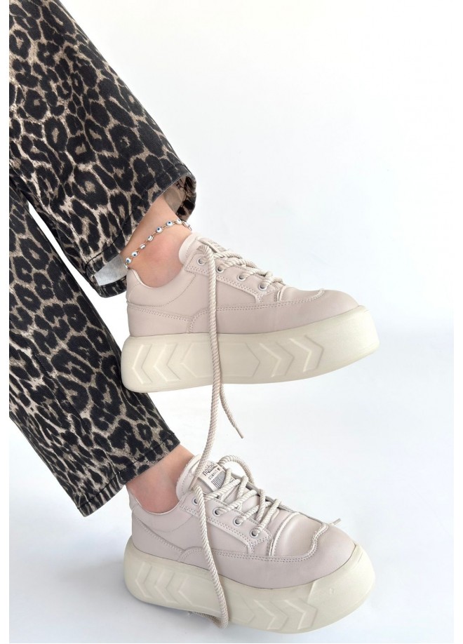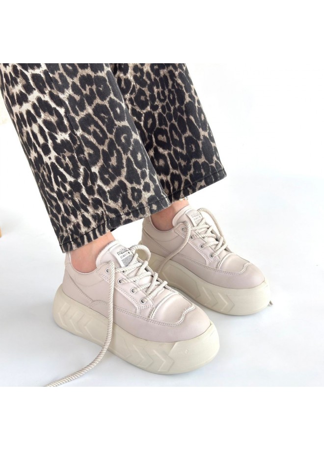 Emwa Bej Cilt Bağcıklı Spor Ayakkabı