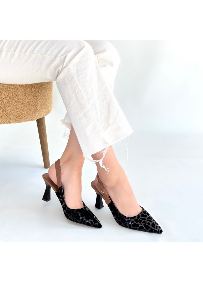Toran Siyah Rugan Siyah Süet Detaylı Topuklu Ayakkabı