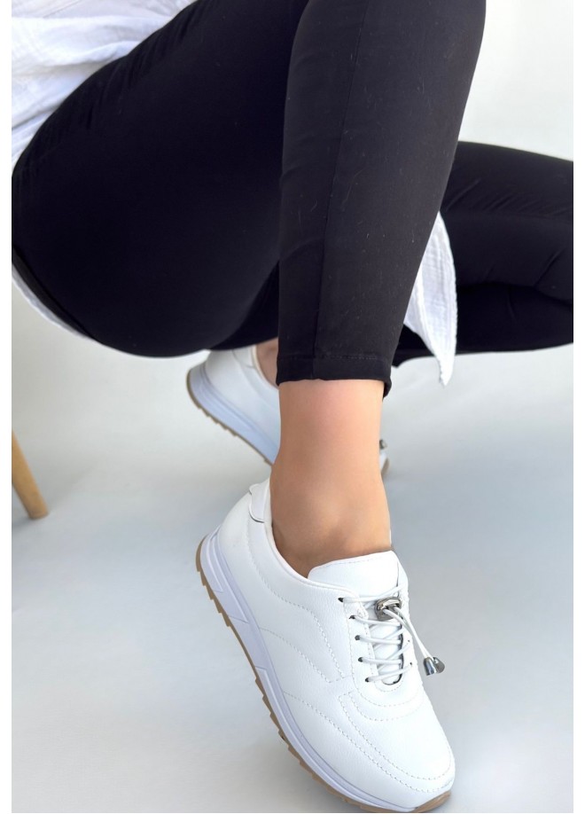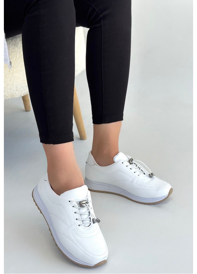 Finna Beyaz Cilt Bağcıklı Spor Ayakkabı