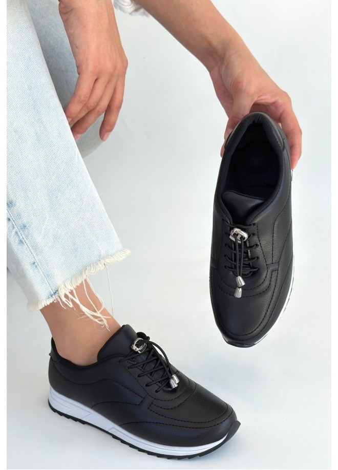 Finna Siyah Cilt Bağcıklı Spor Ayakkabı