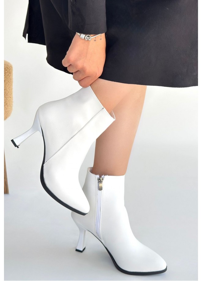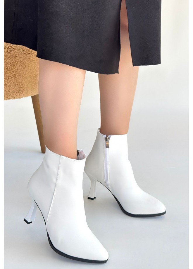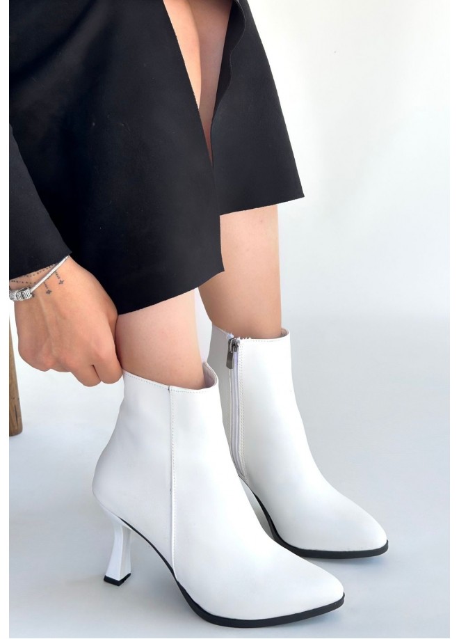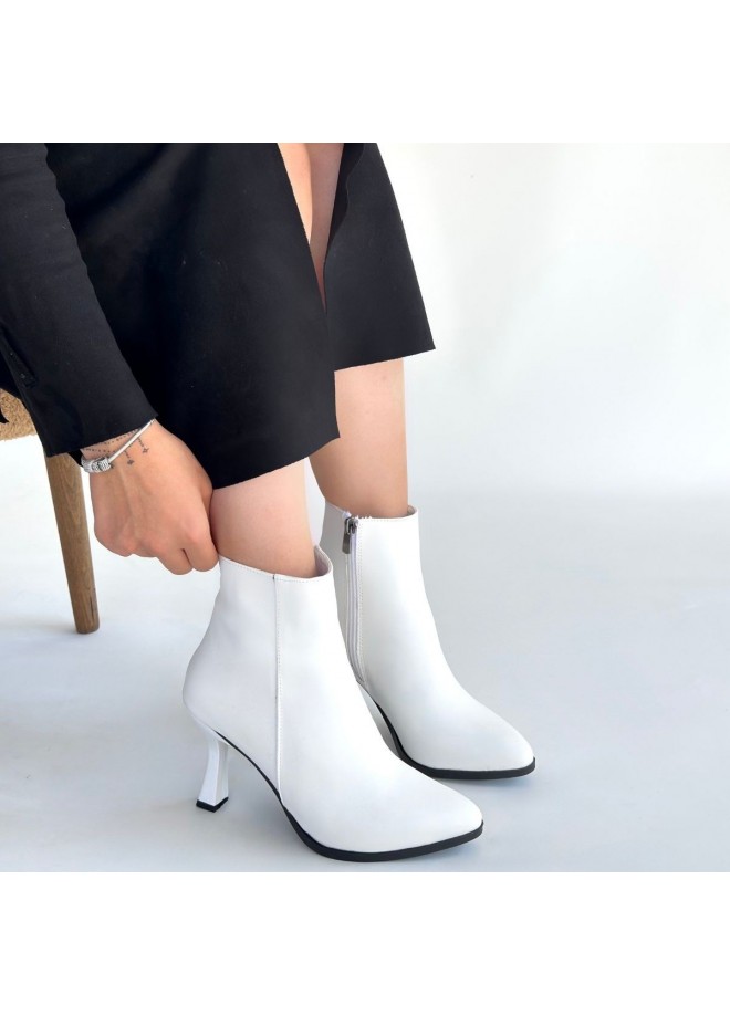Mişha Beyaz Cilt Topuklu Bot