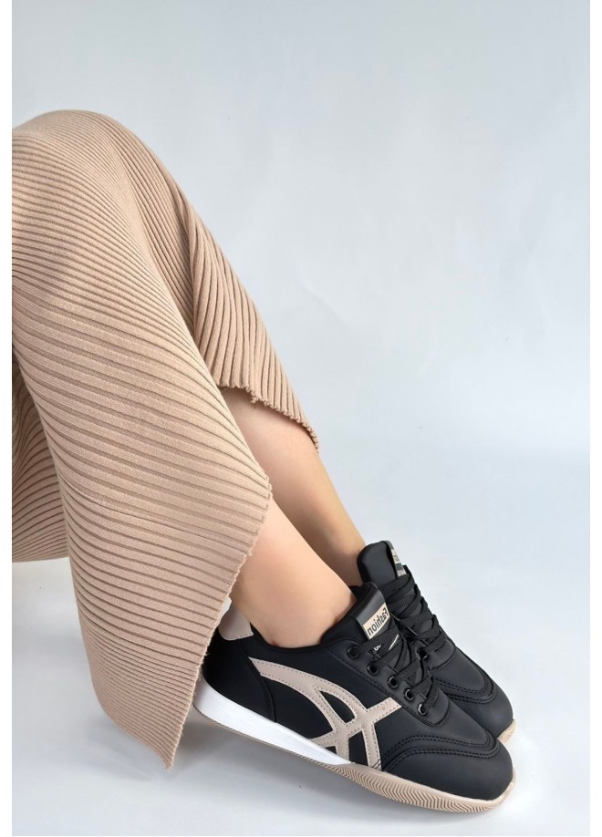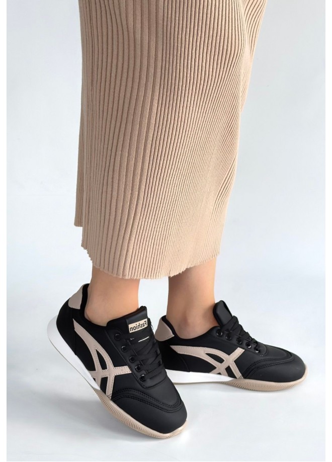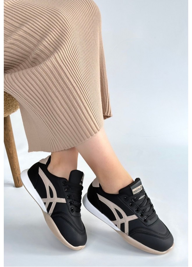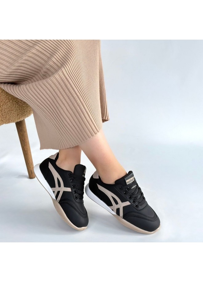 Zlay Siyah Cilt Bej Detaylı Bağcıklı Spor Ayakkabı