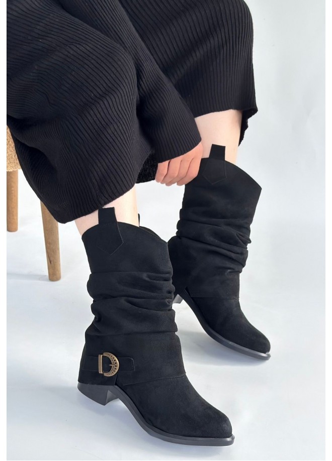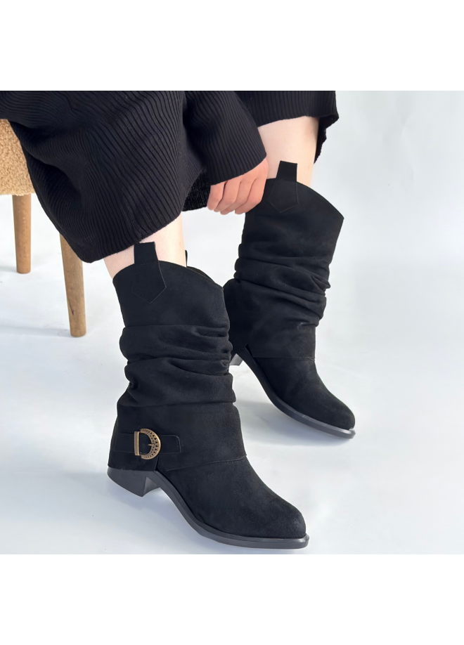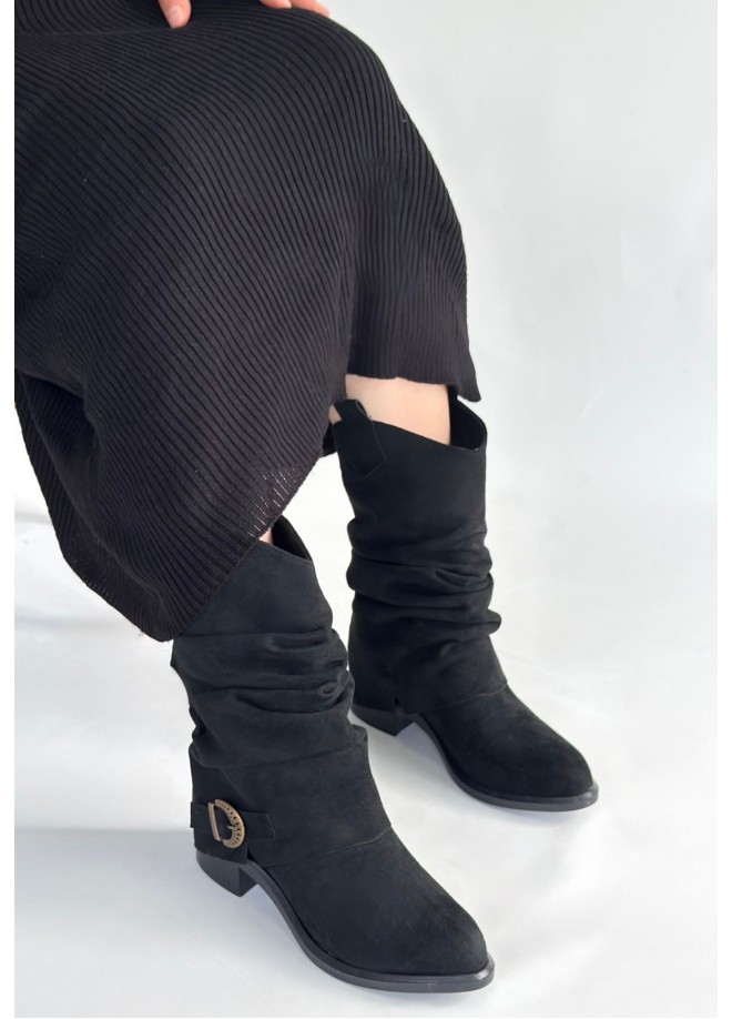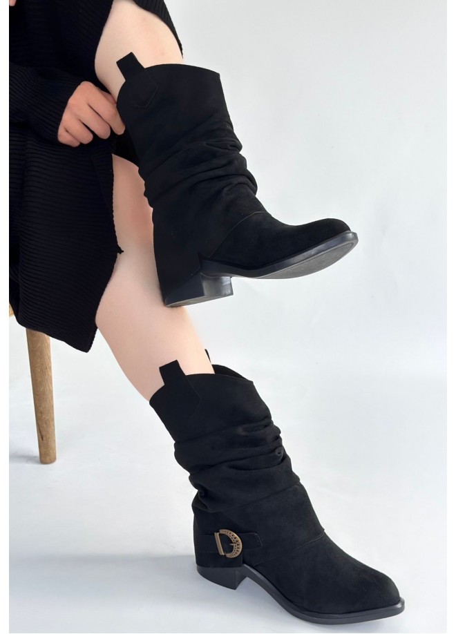 Canty Siyah Süet Körüklü Topuklu Çizme