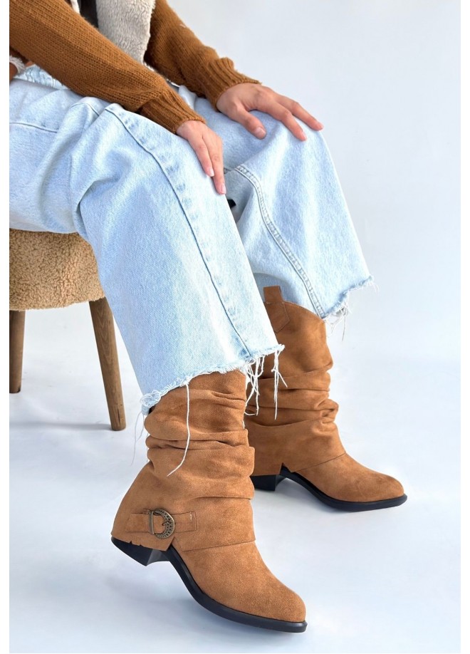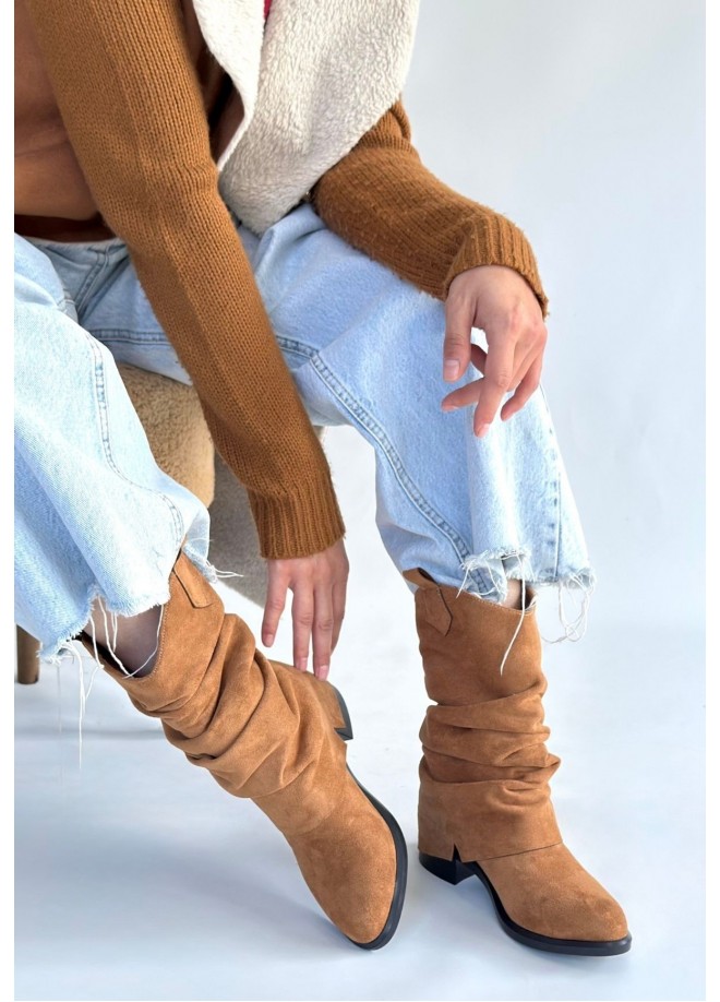 Canty Taba Süet Körüklü Topuklu Çizme
