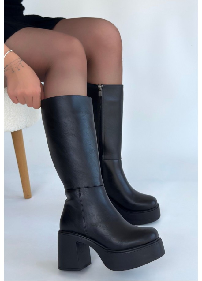 Detay: Topuklu Yandan Fermuarlı Diz Altı Çizme