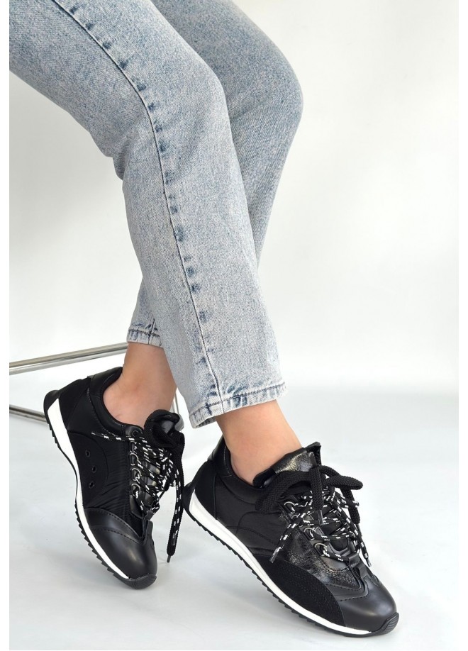 Ranu Siyah Cilt Paraşüt Detaylı Bağcıklı Spor Ayakkabı