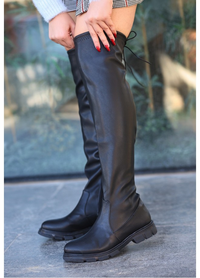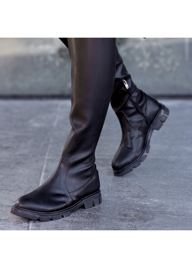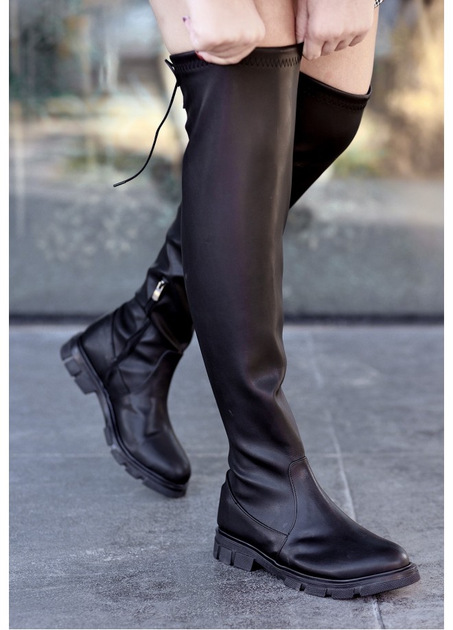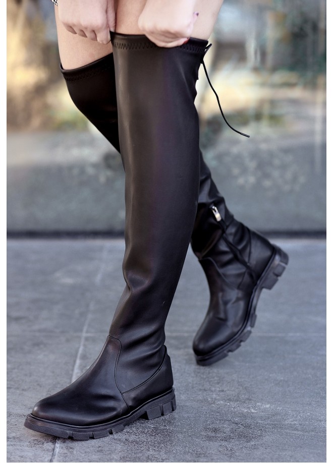 Detay : Topuklu Diz Üstü Yandan Fermuarlı Çizme
