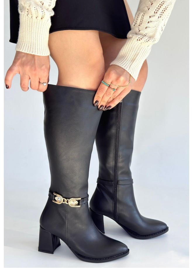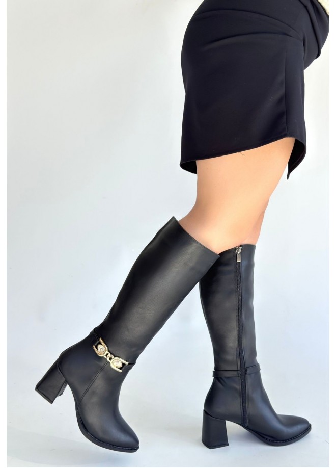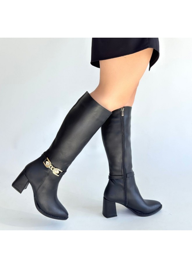 Detay : Topuklu Yandan Fermuarlı Diz Altı Çizme