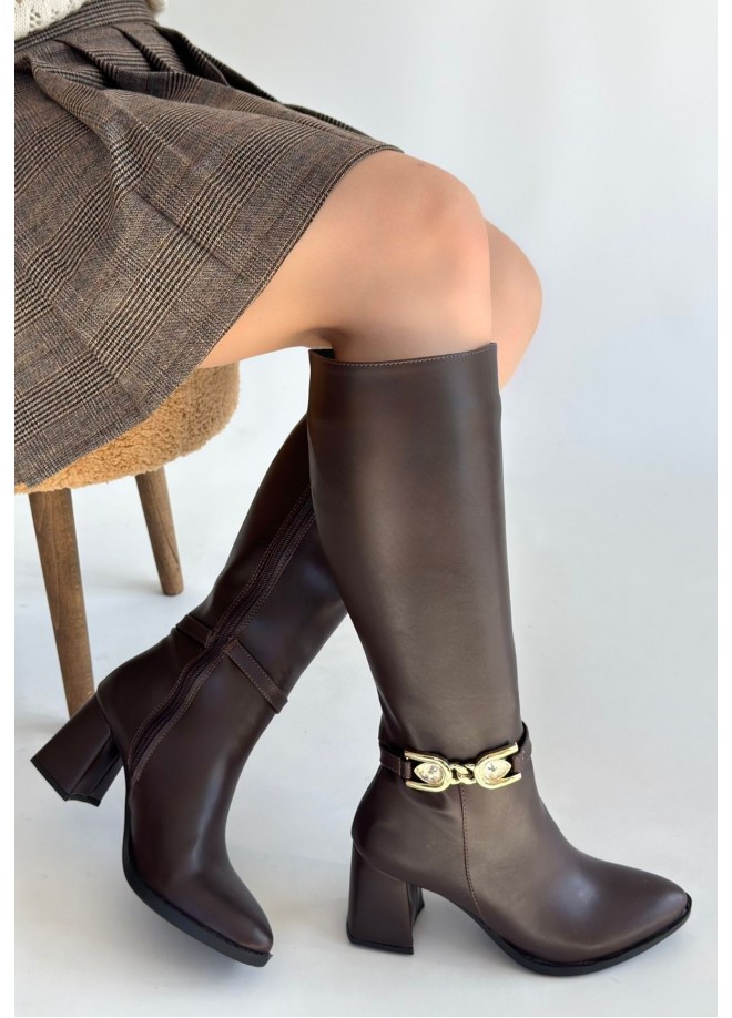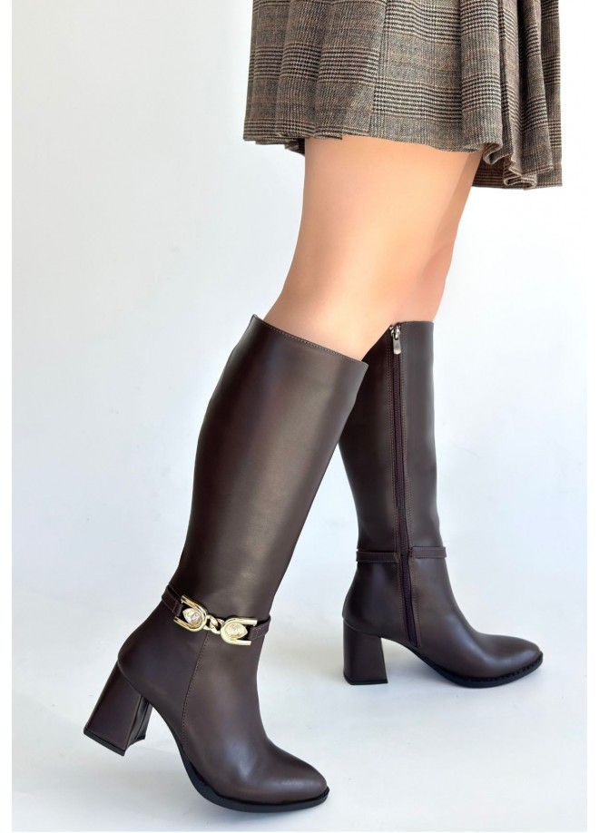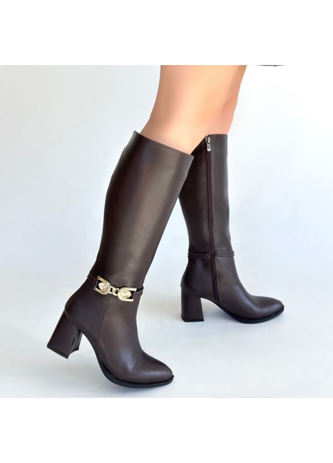 Mooni Kahverengi Cilt Topuklu Çizme