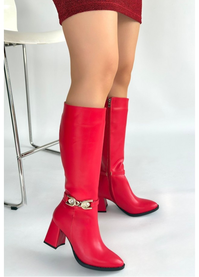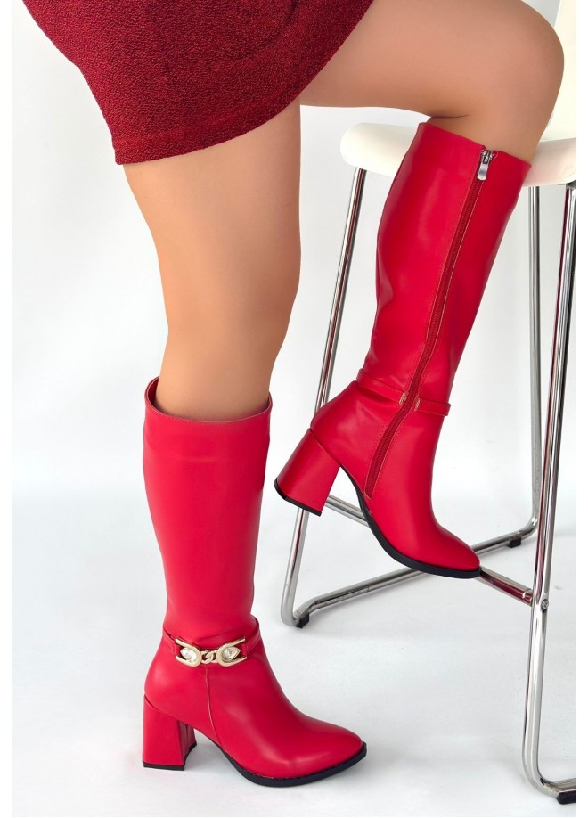 Detay : Topuklu Yandan Fermuarlı Diz Altı Çizme