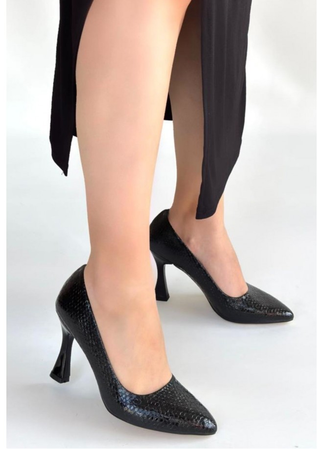 Merio Siyah Baskılı Rugan Topuklu Ayakkabı