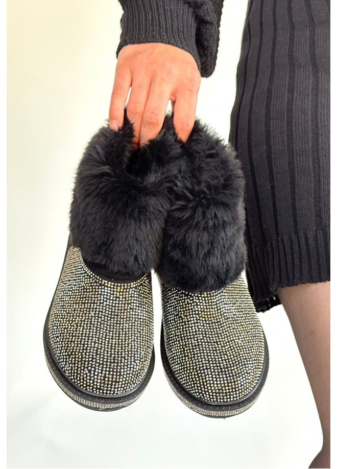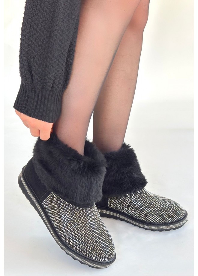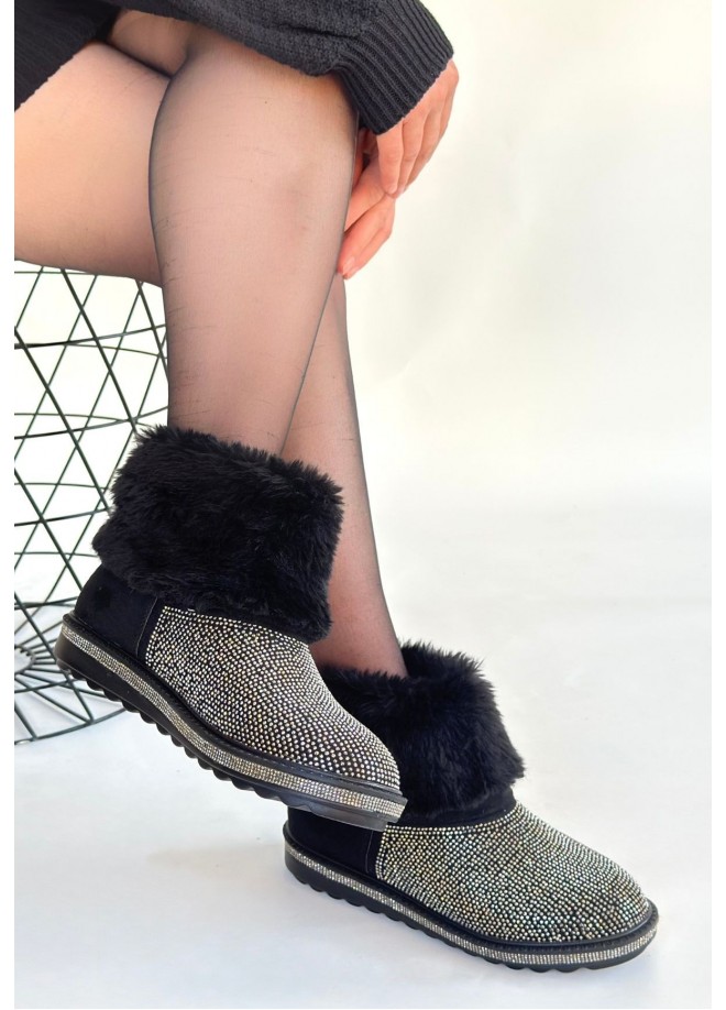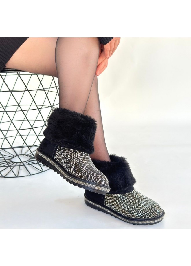 Linka Siyah Süet Gümüş Boncuk İşlemeli Bot
