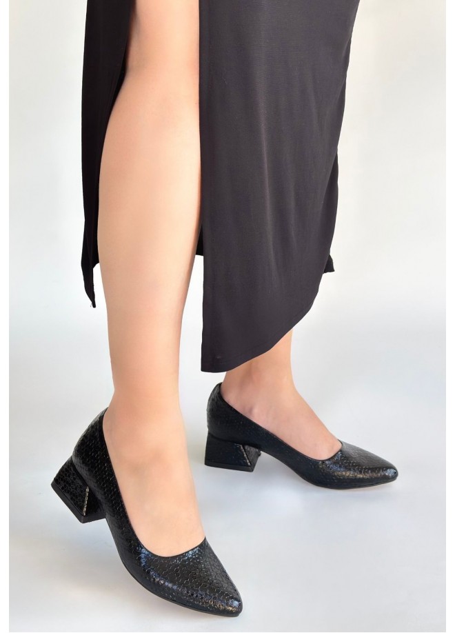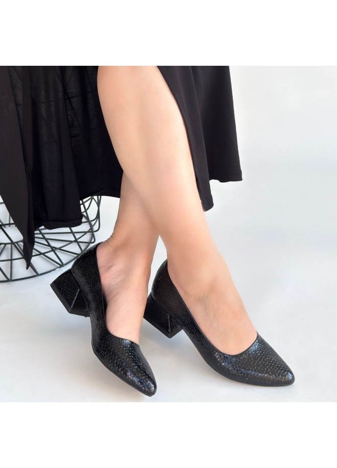 Nitya Siyah Baskılı Rugan Topuklu Ayakkabı