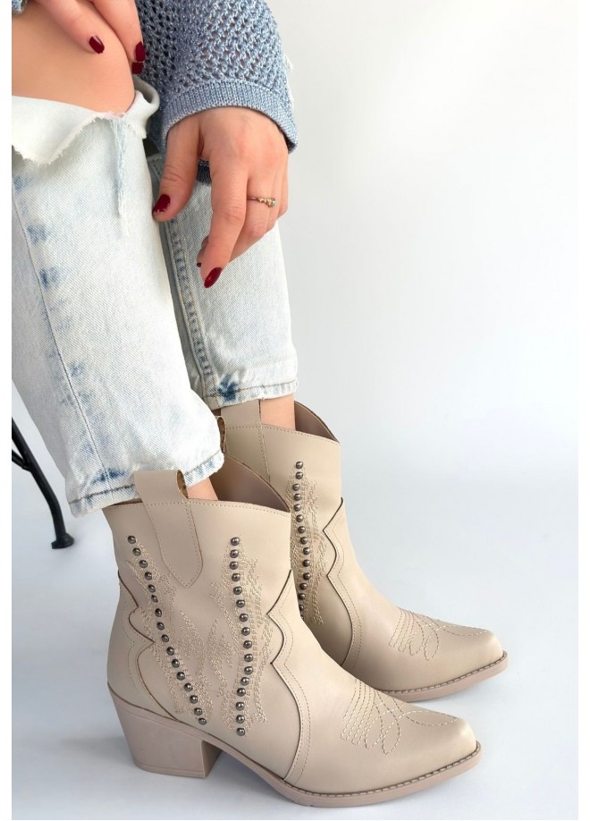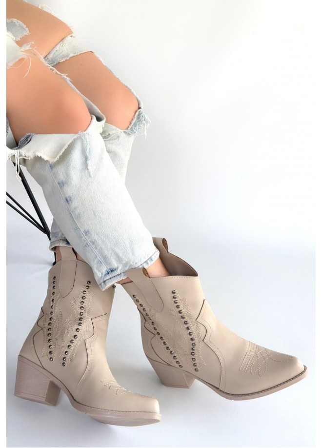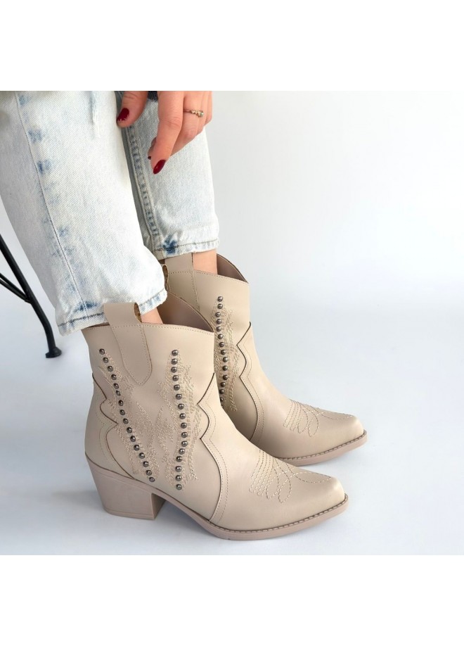Matin Bej Cilt Topuklu Bot