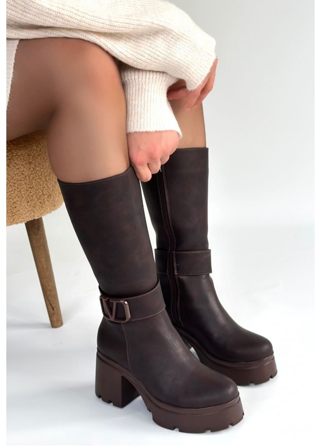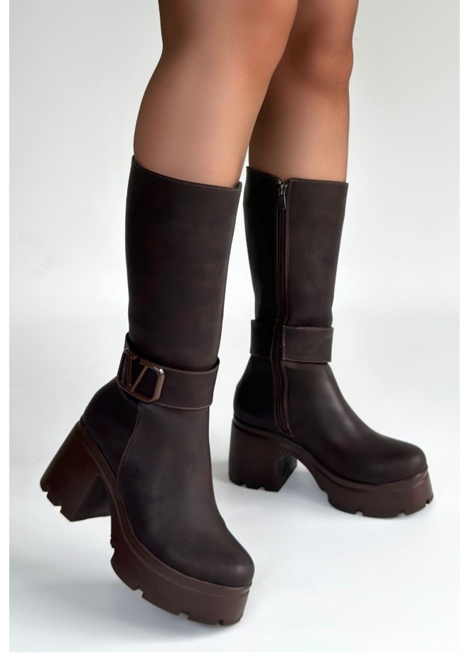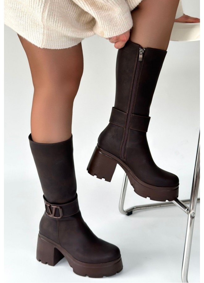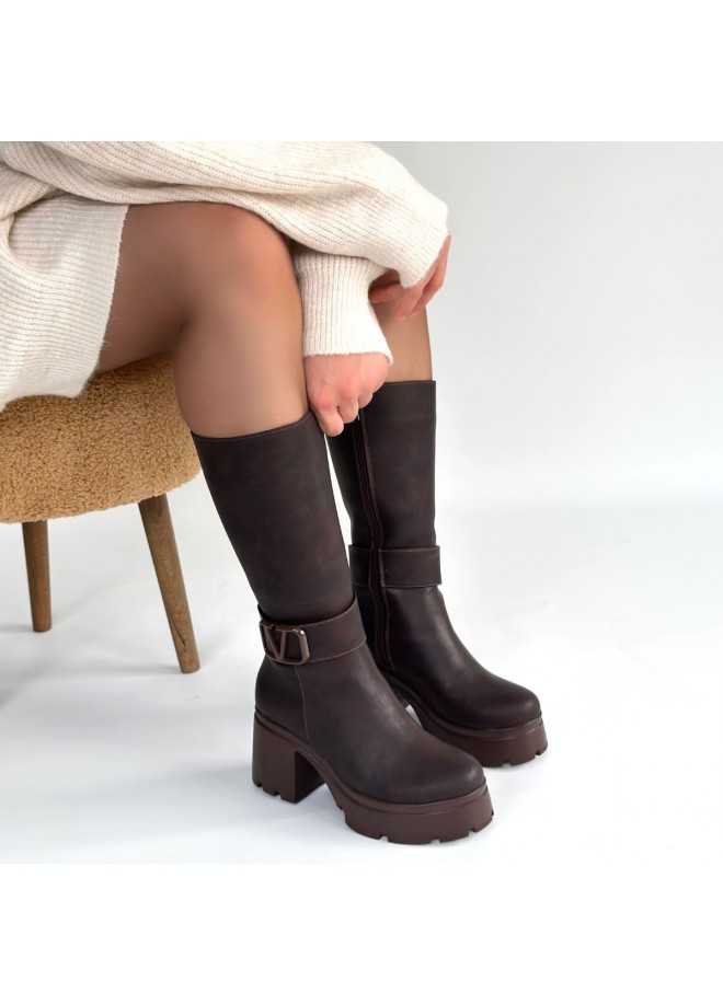Moki Kahverengi Nubuk Topuklu Çizme