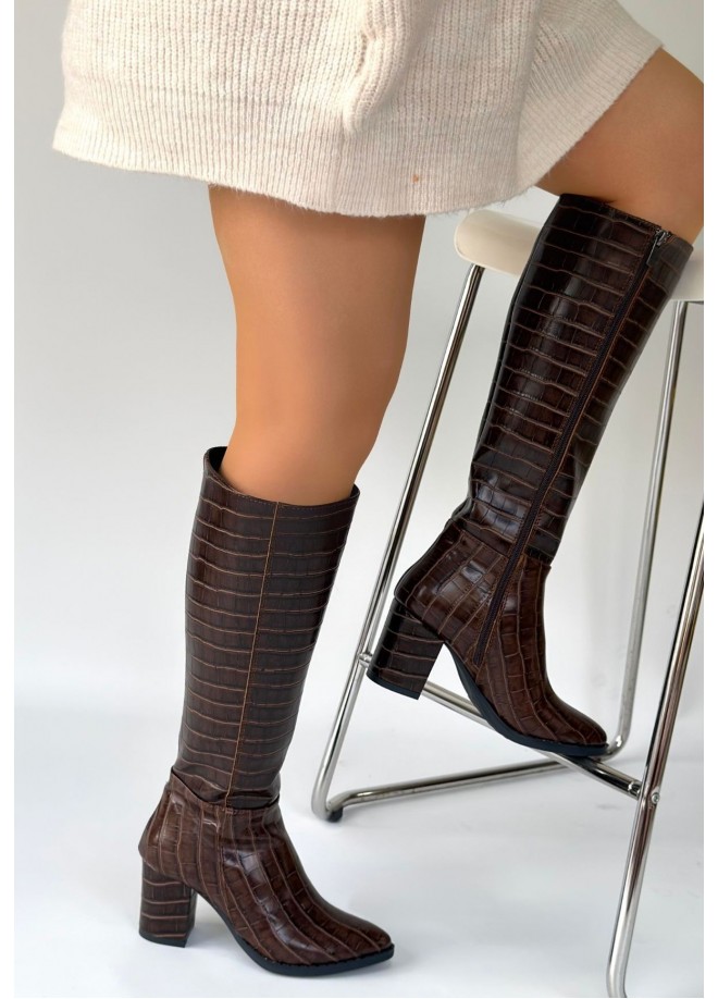 Etiketler: Morena, Acı, Kahve, Desenli, Rugan, Topuklu, Çizme
