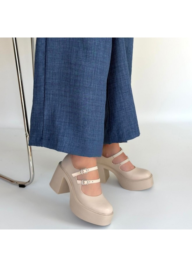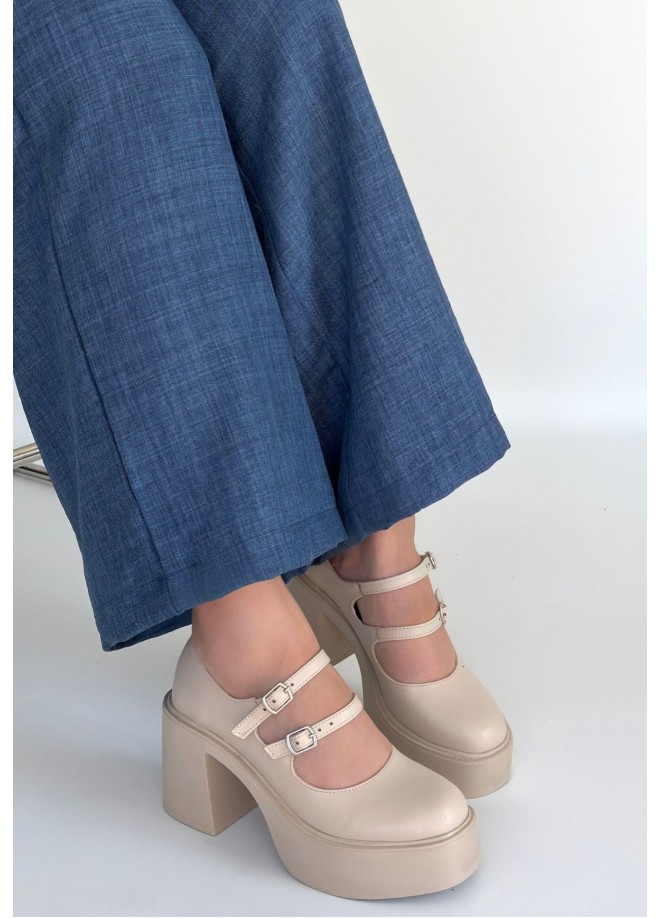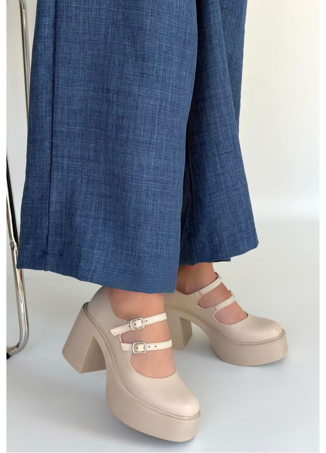Jarlo Bej Cilt Dolgu Topuk Ayakkabı
