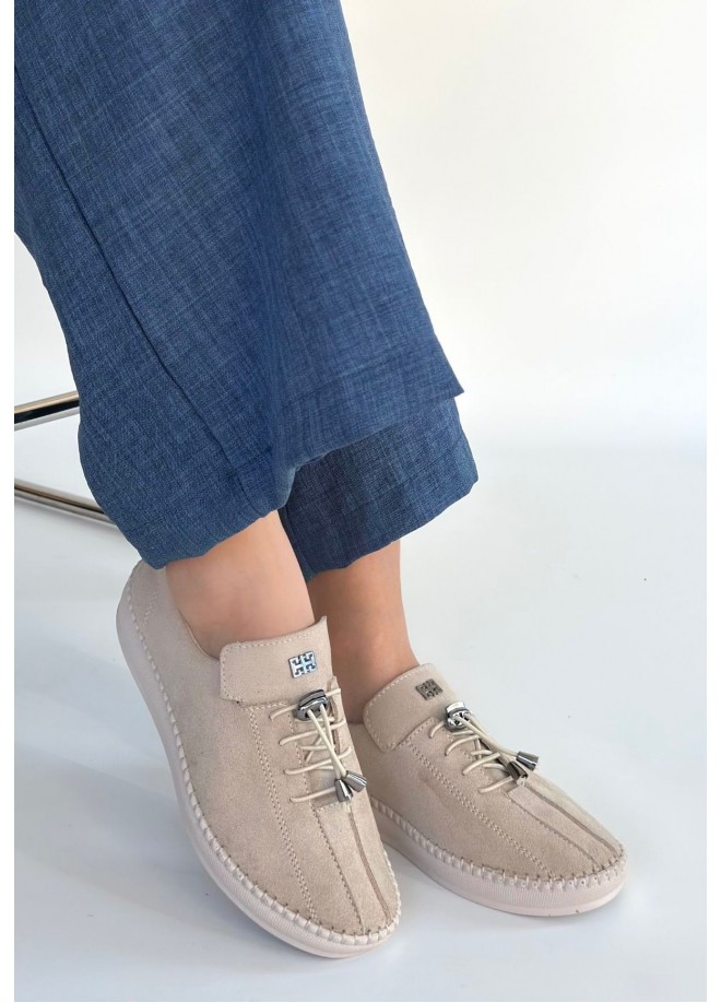 Warte Bej Süet Bağcıklı Spor Ayakkabı
