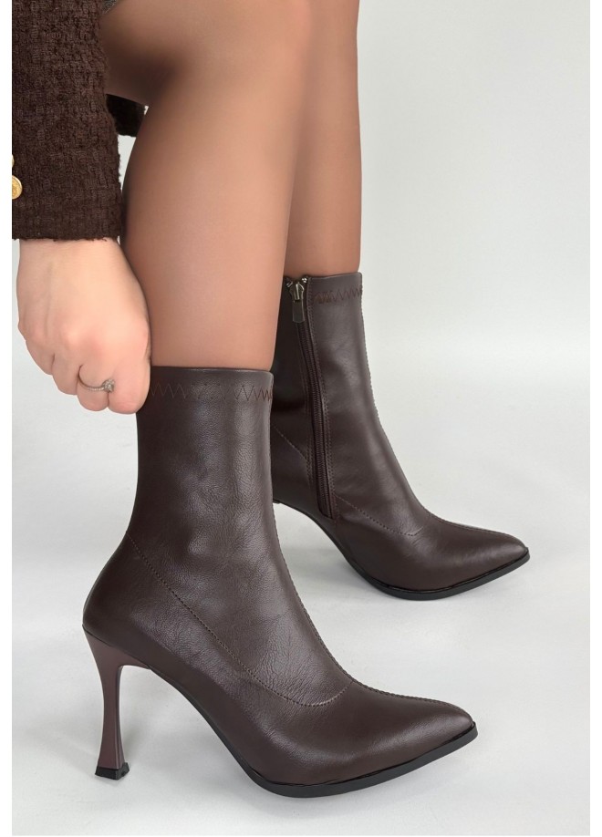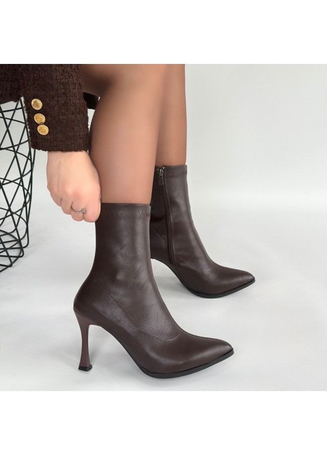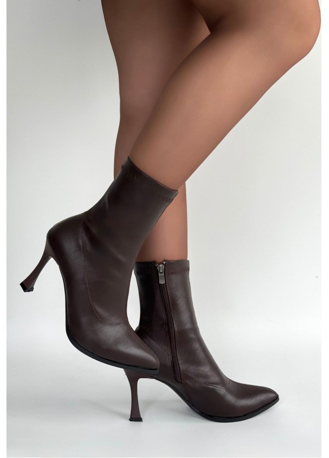 Orjen Kahverengi Cilt Streç Topuklu Bot