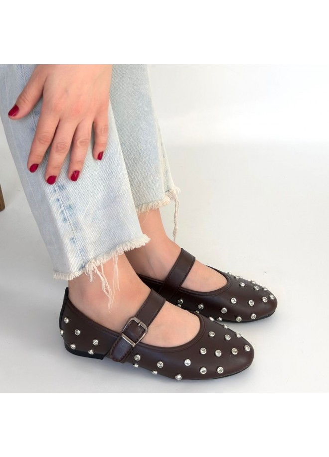 Ritta Kahverengi Cilt Kemerli Babet Ayakkabı