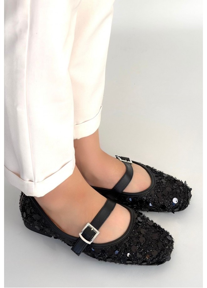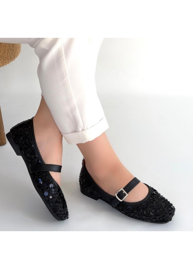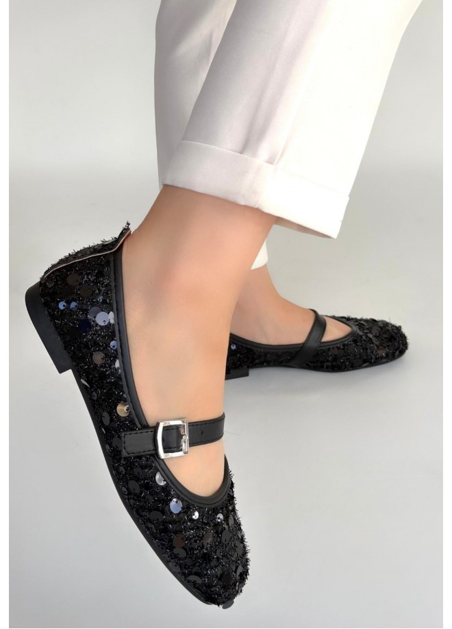 Zaty Siyah Süet Siyah Pullu Babet Ayakkabı