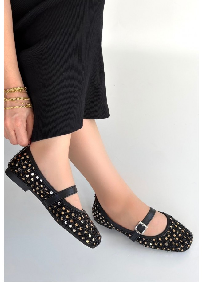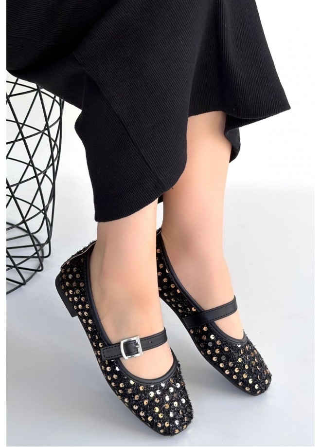 Moden Siyah Süet Babet Ayakkabı