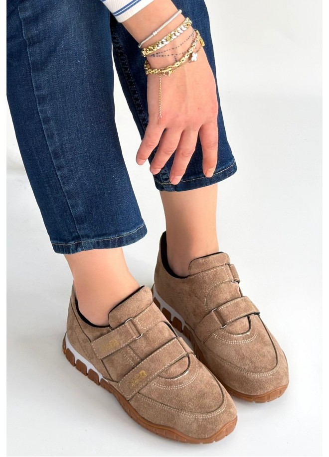 Tunga Bej Süet Cırt Cırtlı Spor Ayakkabı