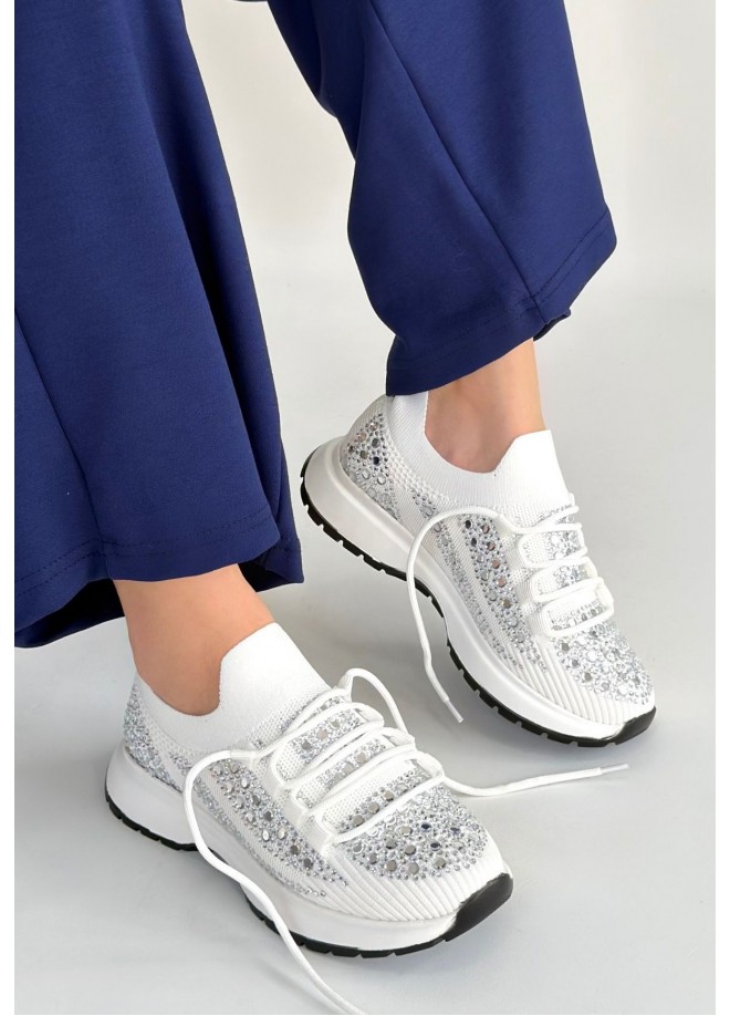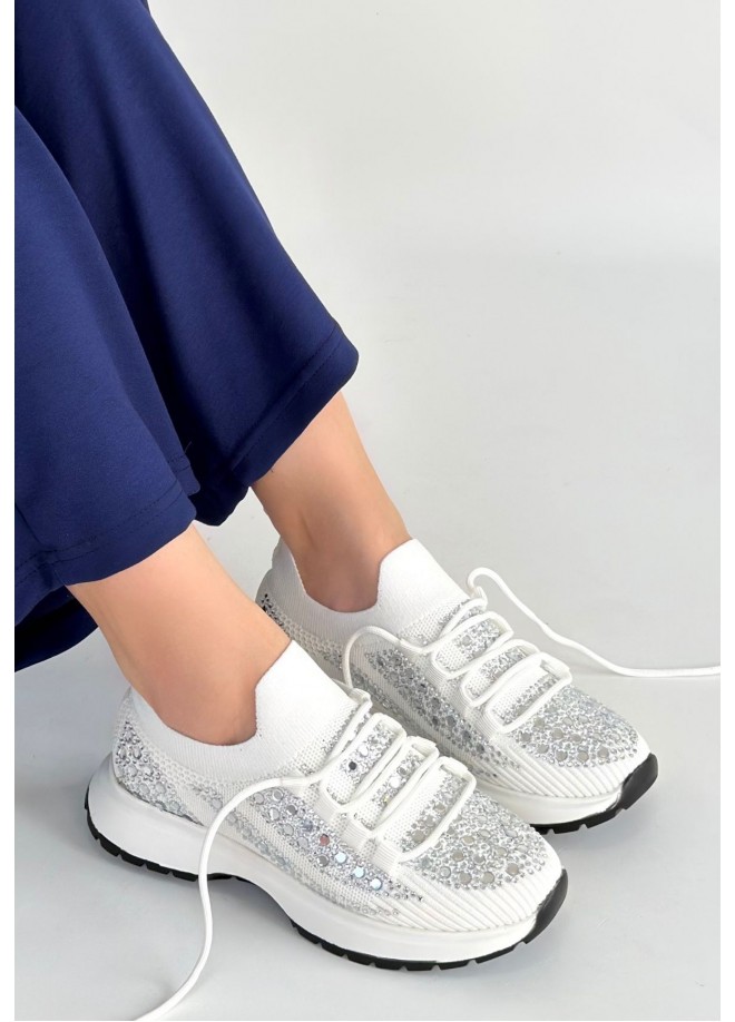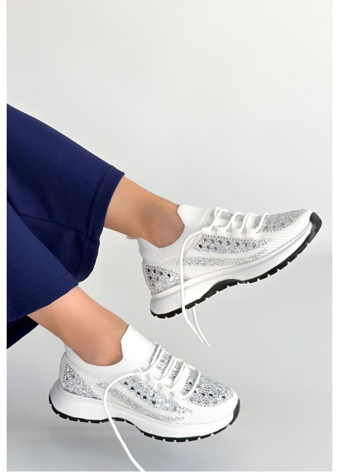 Ceas Beyaz Triko Bağcıklı Spor Ayakkabı
