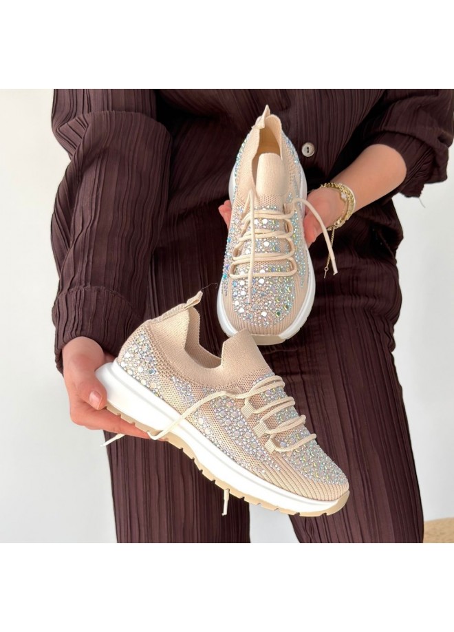 Ceas Bej Triko Bağcıklı Spor Ayakkabı