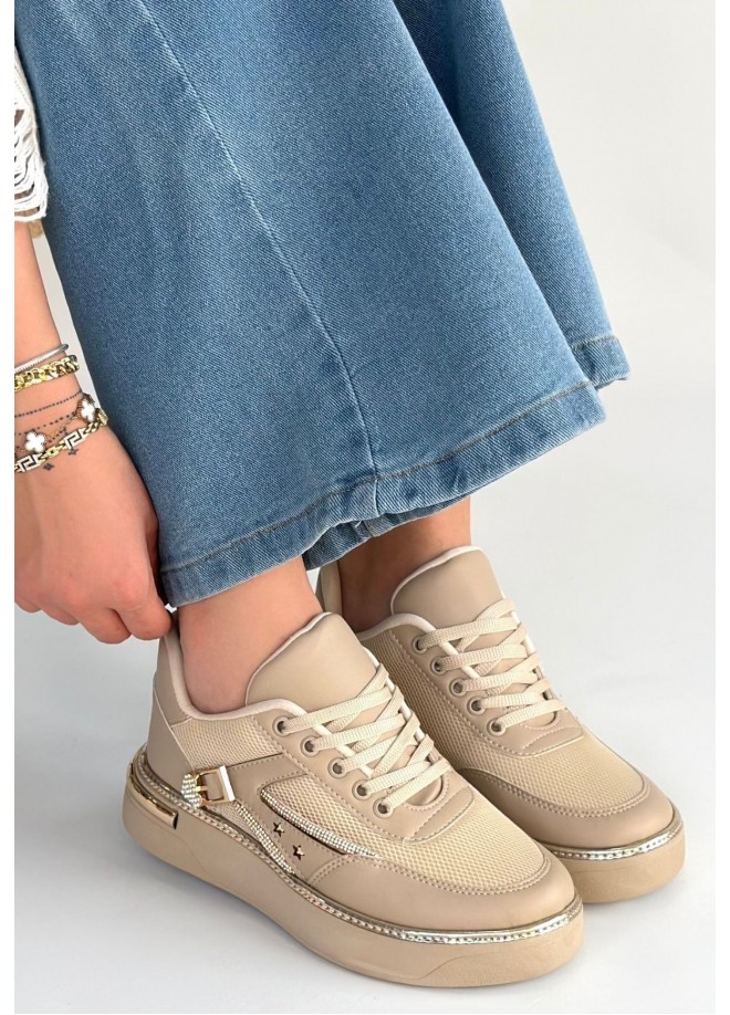 Junda Bej Cilt Bağcıklı Spor Ayakkabı
