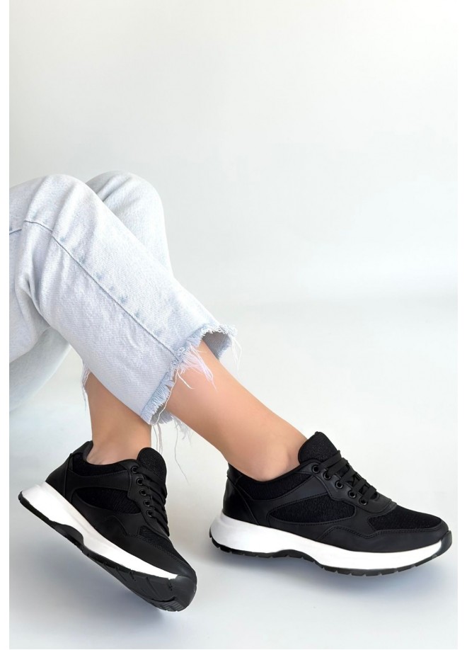 Slar Siyah Cilt Simli Bağcıklı Spor Ayakkabı