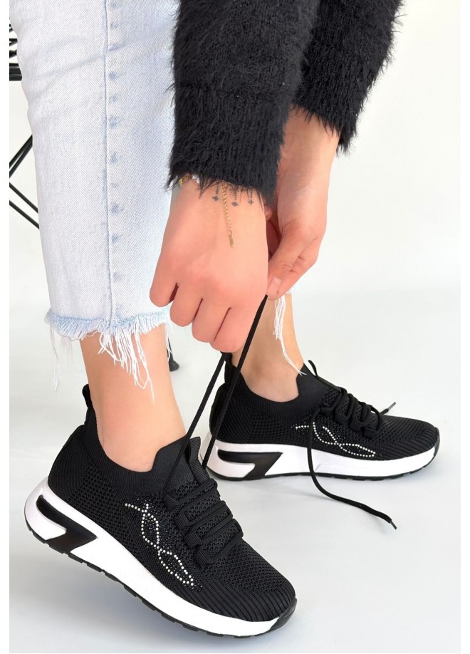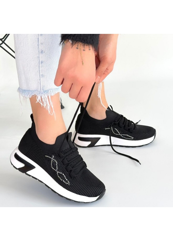 Belan Siyah Triko Bağcıklı Spor Ayakkabı